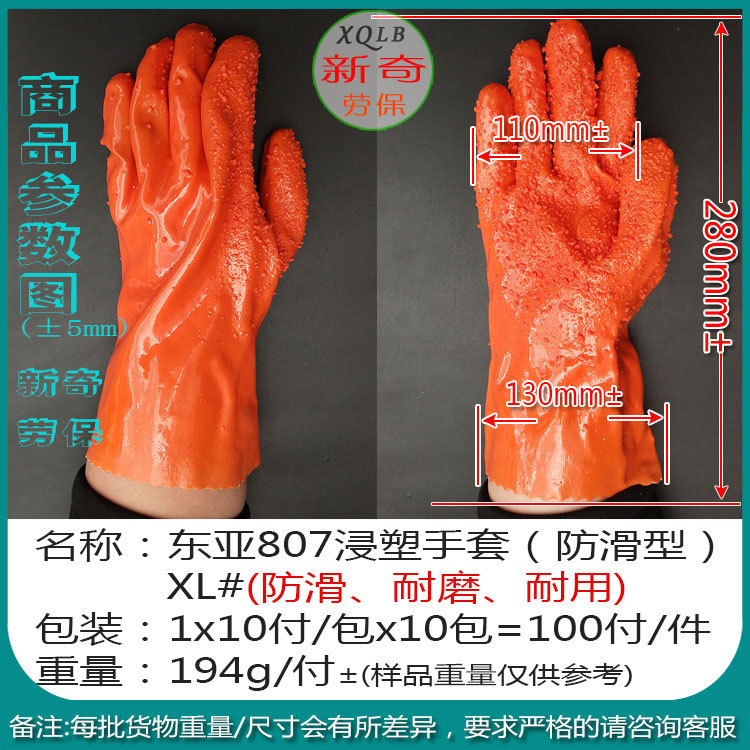 00167# 东亚807 XL内加衬桔色止滑浸塑手套28cm桔胶颗粒, ★ 包装:1箱100双 21.5kg 不含税运: >10双5.8元; >100双5.75元; >1000双5.7元 网址:http://www.518laobao.com/html/lb_show.php?fid=167