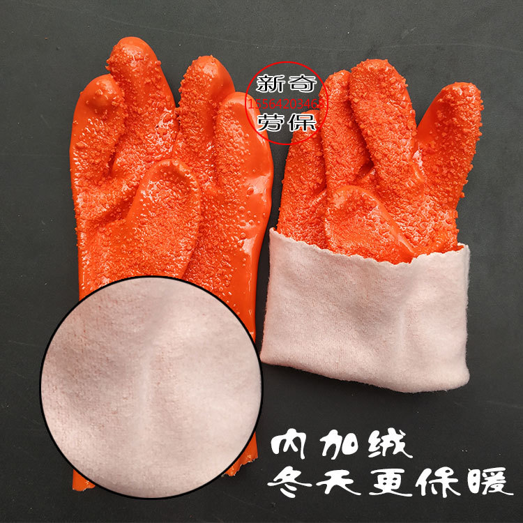 东亚807 XL内加衬桔色止滑浸塑手套28cm桔胶颗粒