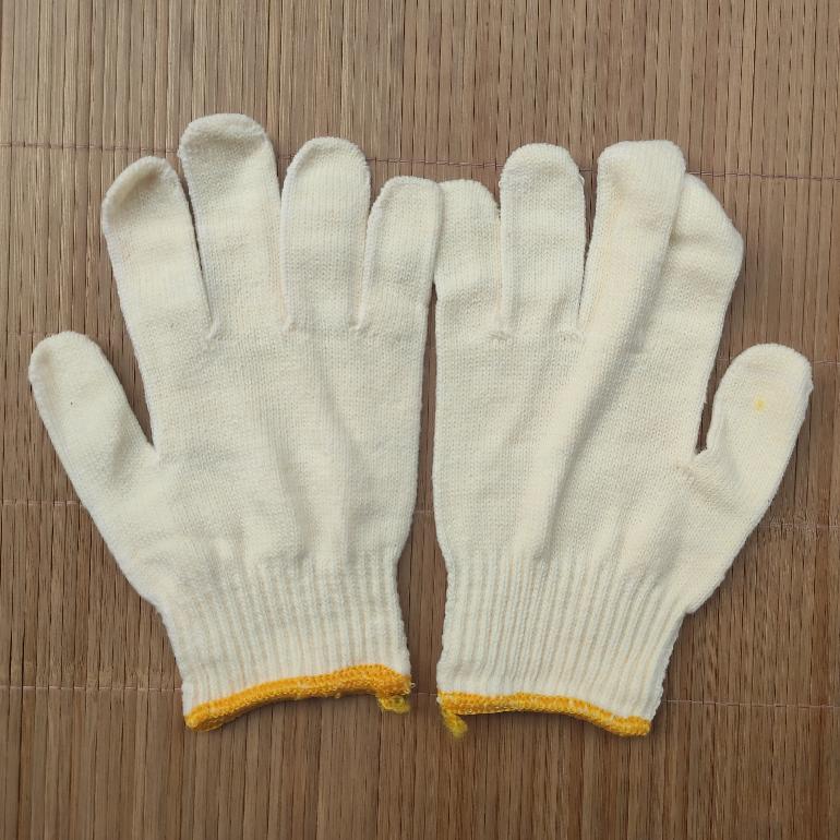 十针棉盖涤线手套10双500g★彩袋800双装.向黄边.