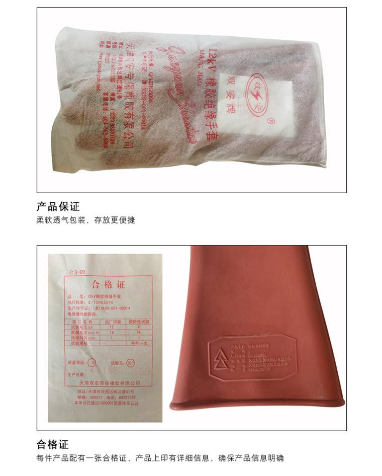 双安12KV电工绝缘手套; 执行标准:Q/12HG5096;符合:GB17622-2008