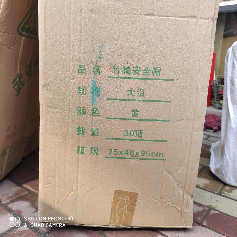 武夷大帽沿竹编安全帽-加钢板320g 执行标准:GB2811-2007 QS认证:XK02-001-00027 证书编号:A-2019-1948 标识编码:19-35-101015 包装数量:30顶*320g 30个箱规尺寸: 75*40*95cm 13.6kg 记泡57.0kg/1.9kg 10个箱规尺寸: 76*40*35cm 4.7kg 记泡21.3kg