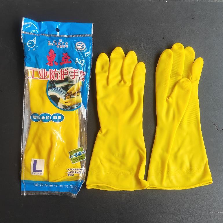 东亚A32黄色浸胶/浸塑手套 牛筋 工业乳胶 耐酸碱120双装