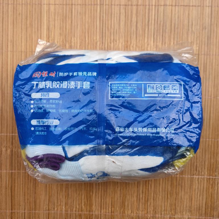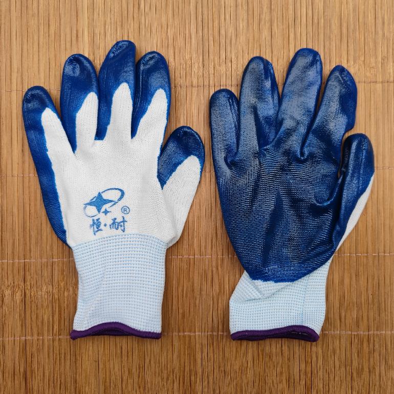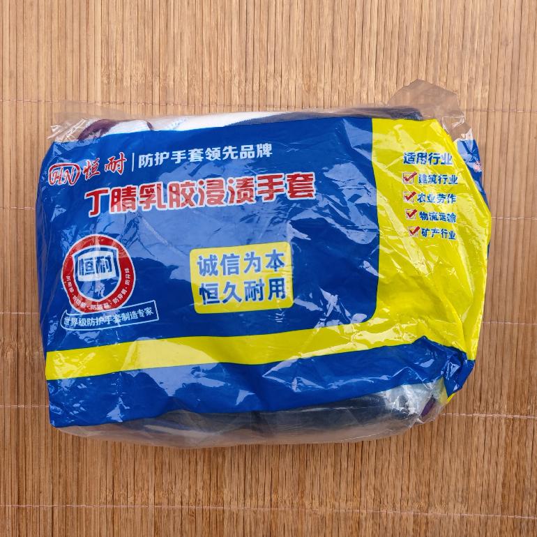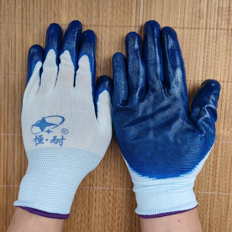 恒耐白纱蓝丁腈手套35g 平挂浸胶单面胶