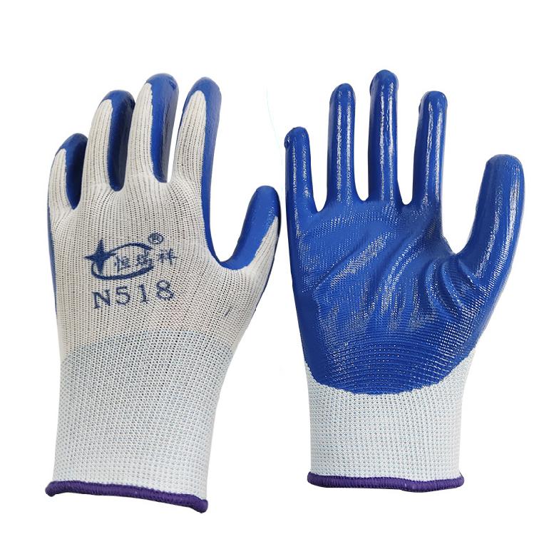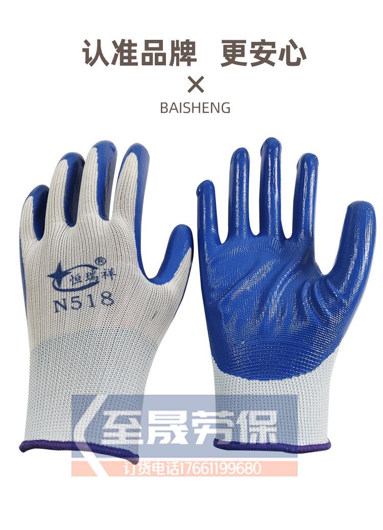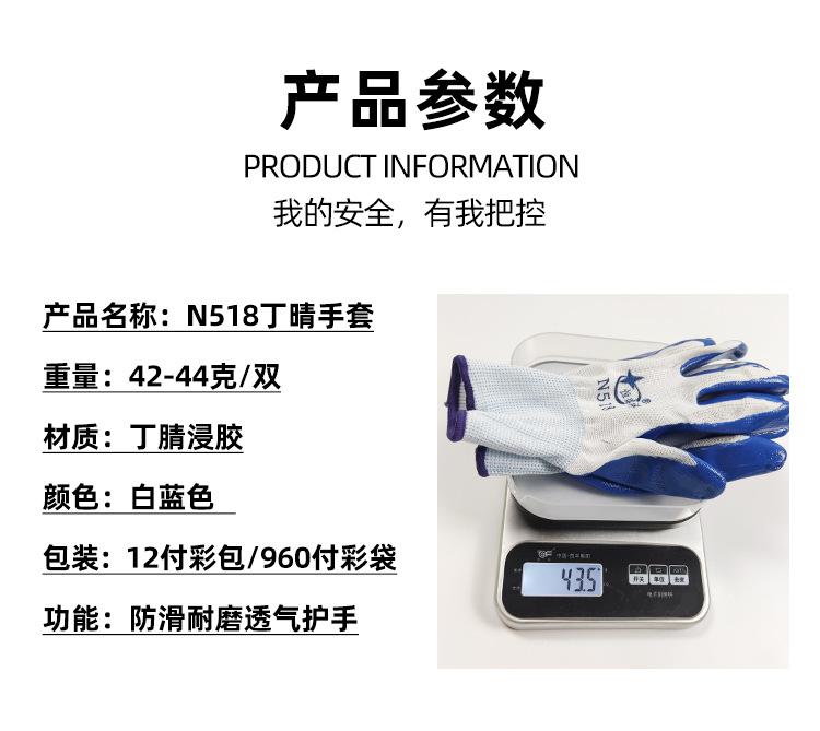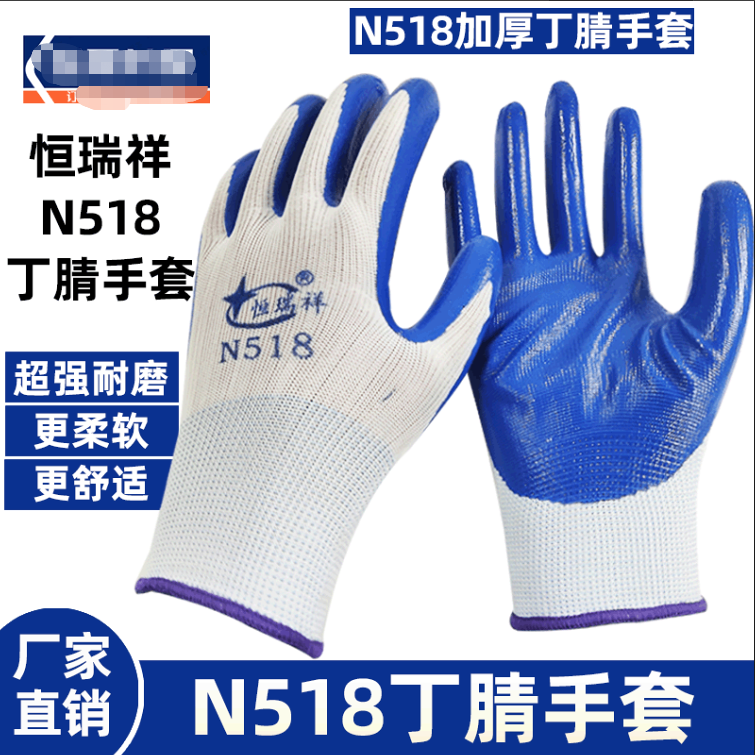 恒瑞祥N518白纱蓝丁腈平挂浸胶手套