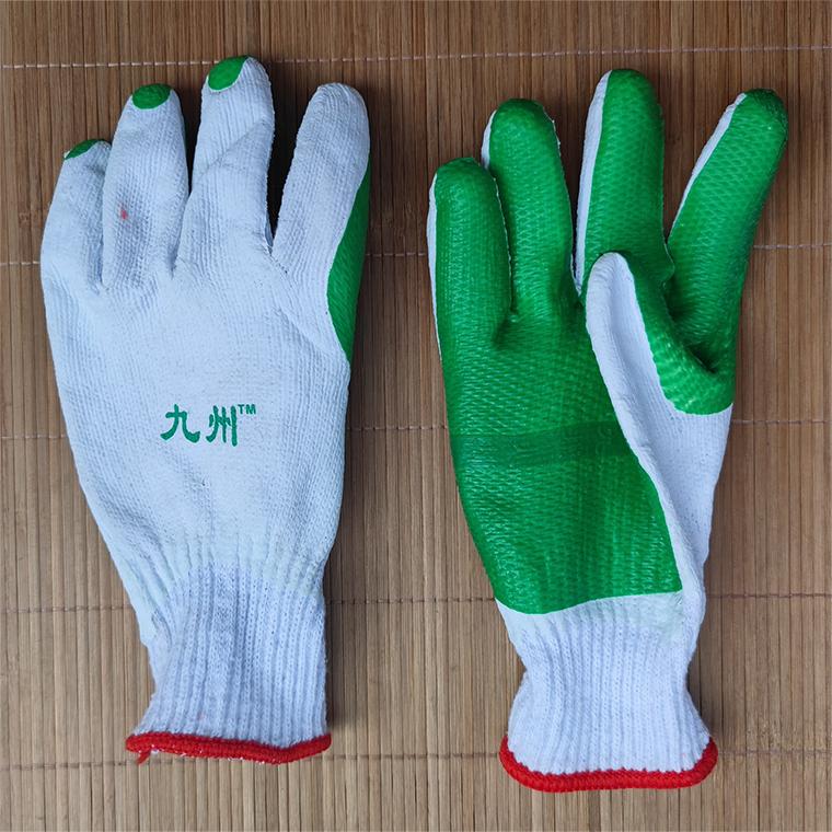 九州十针白纱绿胶片手套97g