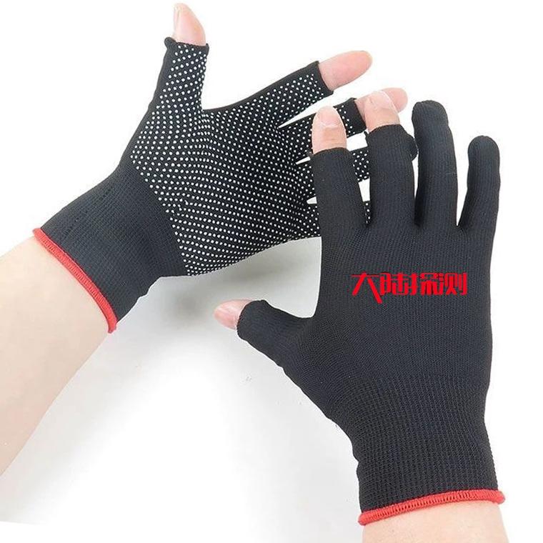 半指露三指点塑手套★黑色尼龙点珠/点胶