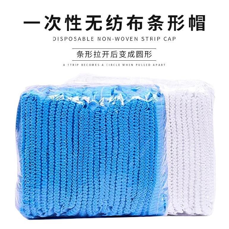 双筋19寸条形帽★12g布无纺布一次性头套(白色/蓝色)