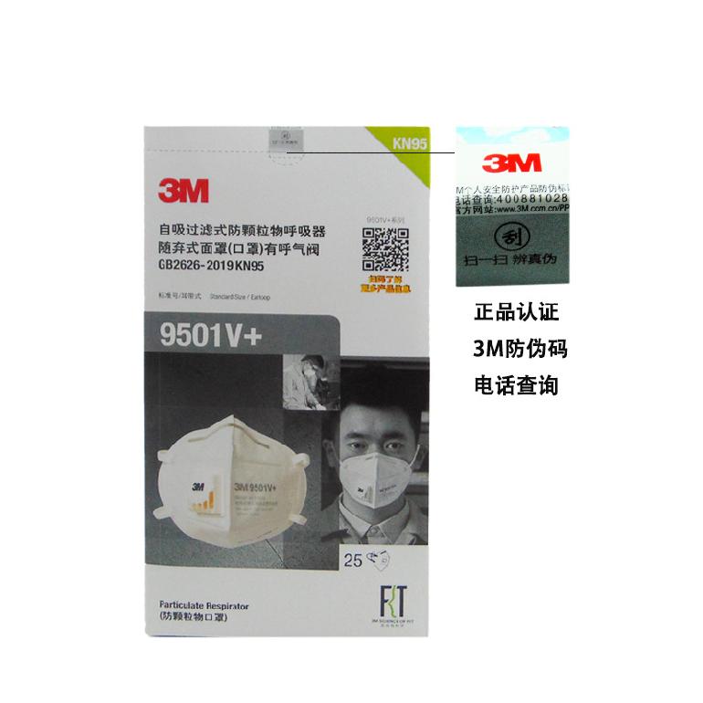 3M 9501V-KN95 折叠式口罩/耳带式 带阀/海绵鼻垫/防颗粒物 商品型号:9501V+ 包装规格:25个/盒