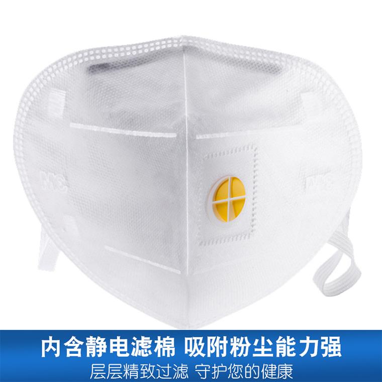 3M9502V+头戴式(袋装25只)带阀白色KN95口罩折叠无海绵鼻垫/防尘