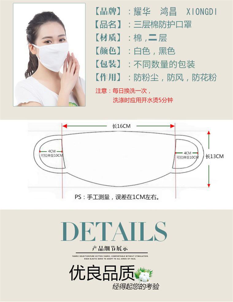 鸿昌白色大2层口罩/纯棉口罩/挂耳式