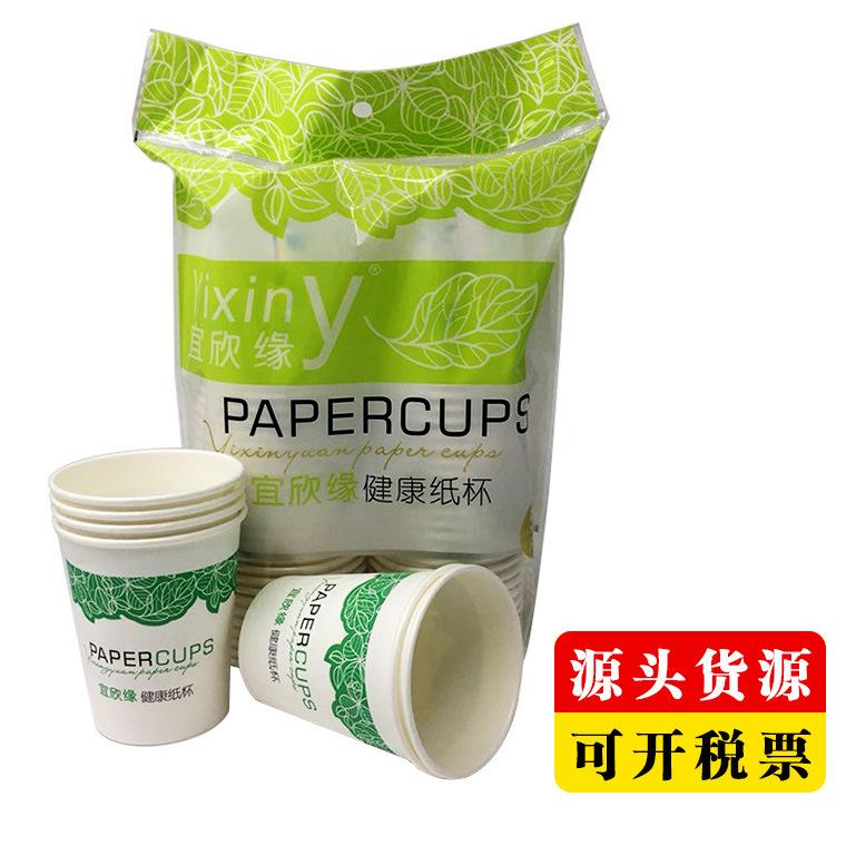 宜欣缘5368白色纸杯绿色印花一次性纸杯245ml