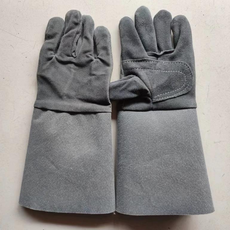 长款二层牛皮电焊手套+掌心皮+皮革接袖-混色