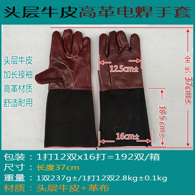 长款38cm头层半牛皮+拇指加筋+皮革接袖电焊手套.深色混色
