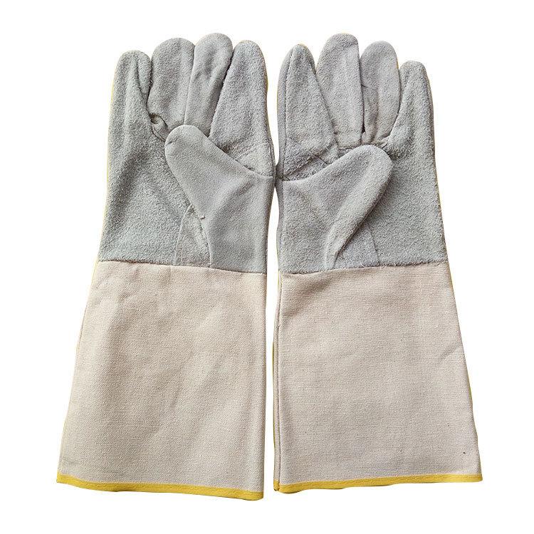 长款灰色 单层 二层半牛皮+虎口加筋+帆布接袖电焊手套25cm