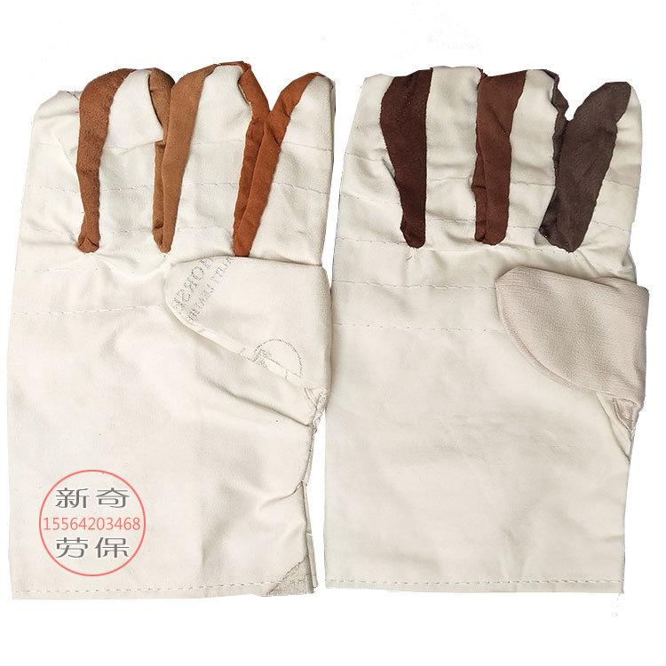 短白革布5线帆布手套-花布手指-半衬