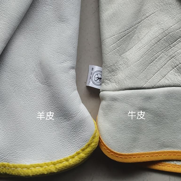 灰色短款羊皮全掌电焊手套-沾合扣 出口尾货