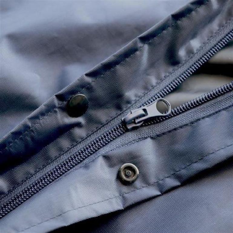 成人牛津布连体雨衣★藏黑.单层.大帽檐.单反光条★铭航.风衣款.通码180
