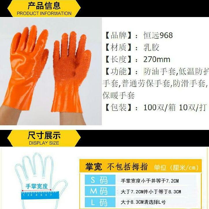 恒远968防滑耐油浸塑手套 桔色颗粒/抗腐蚀耐酸碱