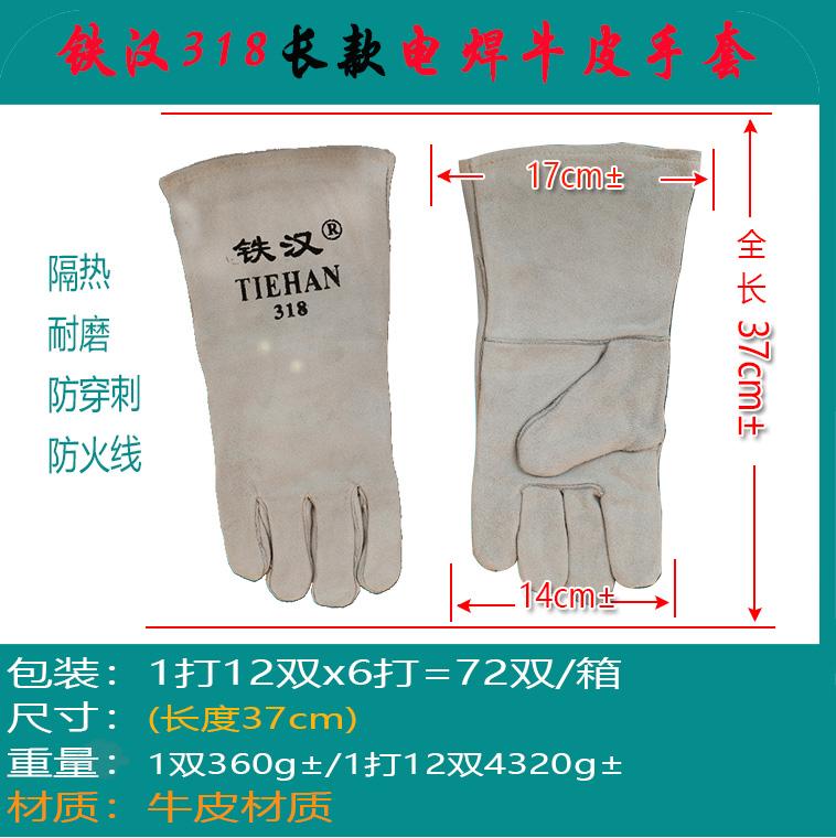 铁汉318长款二层牛皮电焊手套/本色/防火线