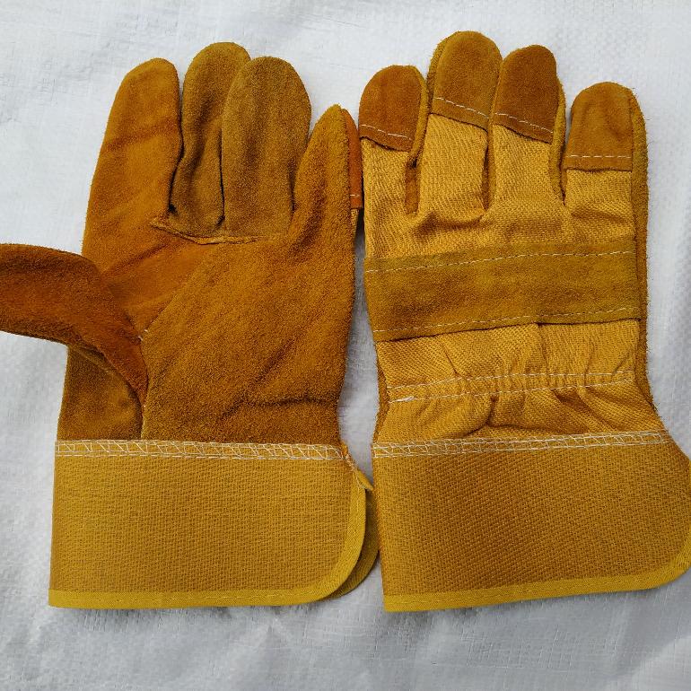 03050 短款黄色二层牛皮电焊手套/七刀/半皮/涤棉黄布