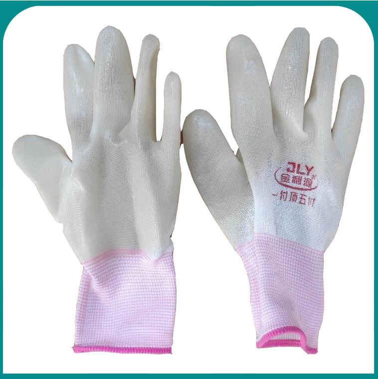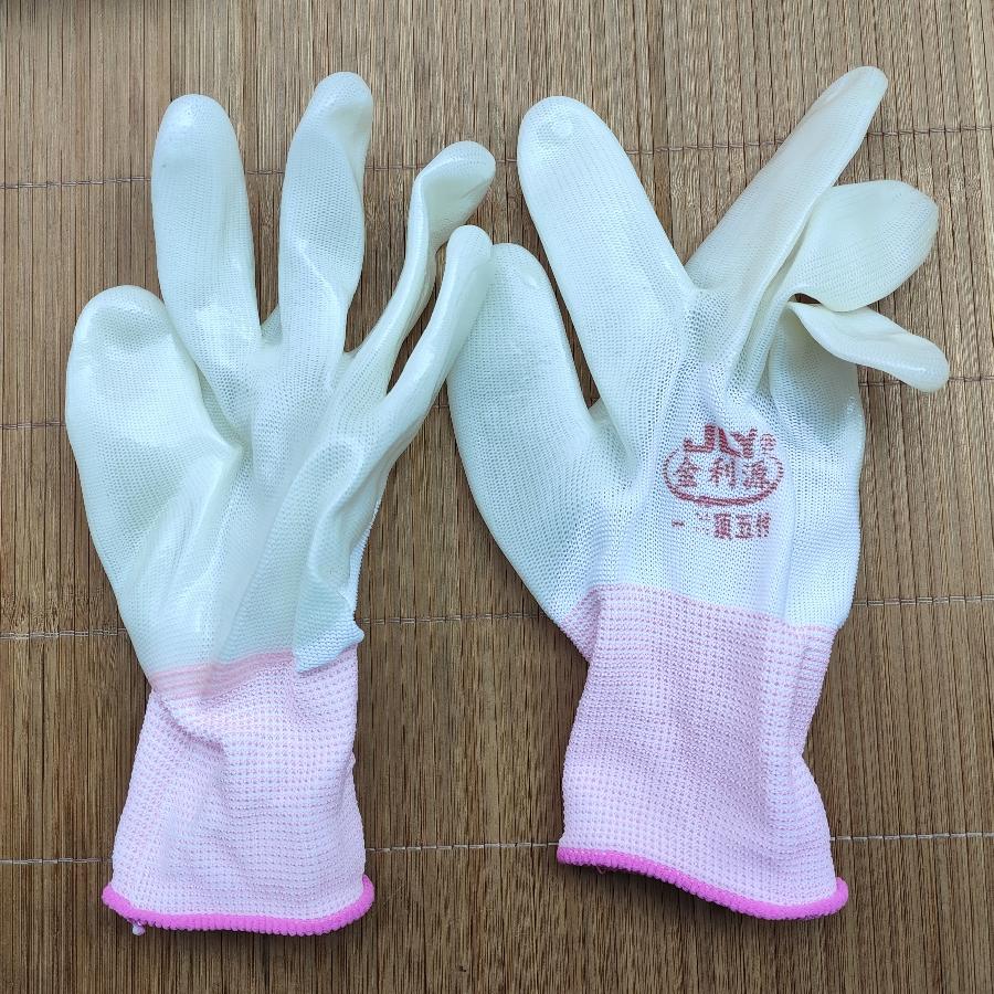 金利源10#XL白纱白PVC全挂手套-进口胶-粉边袖口