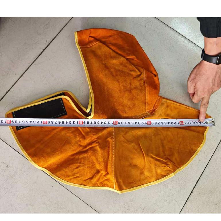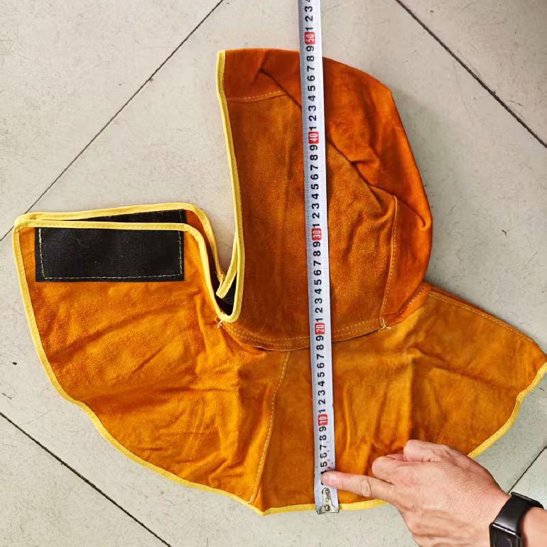 黄色二层牛皮披肩帽-海绵内衬/魔法贴 焊工披肩帽420g