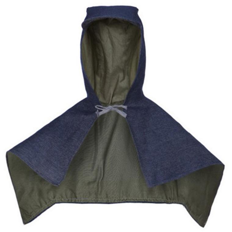 牛仔布披肩帽(双层)★系带.带帽檐★生料230g内加衬.防尘帽