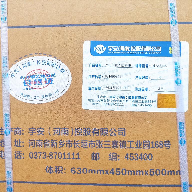 02726# 宇安控股一次性医用防护服覆膜连体带帽PP+PE 60套装 180, ★ 包装:60件/箱14.9kg 不含税运: >60套17.0元; >600套16.7元; >6000套16.5元 网址:http://www.518laobao.com/html/lb_show.php?fid=2726