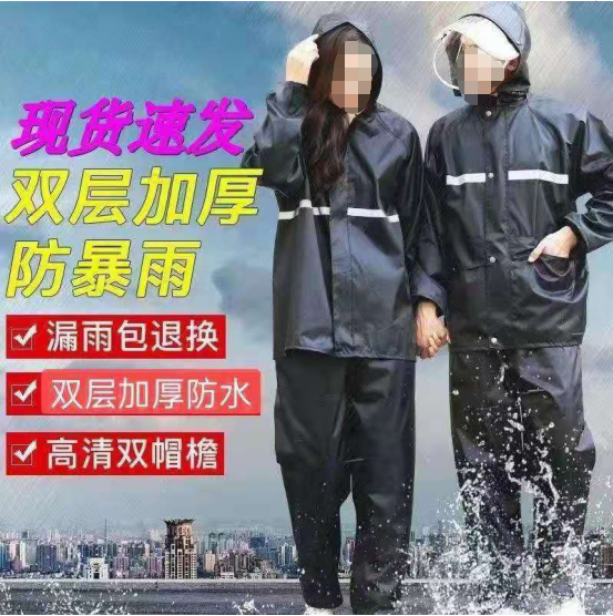 吉祥 牛津来格面料双层帽檐防渗透雨衣套装-黑色