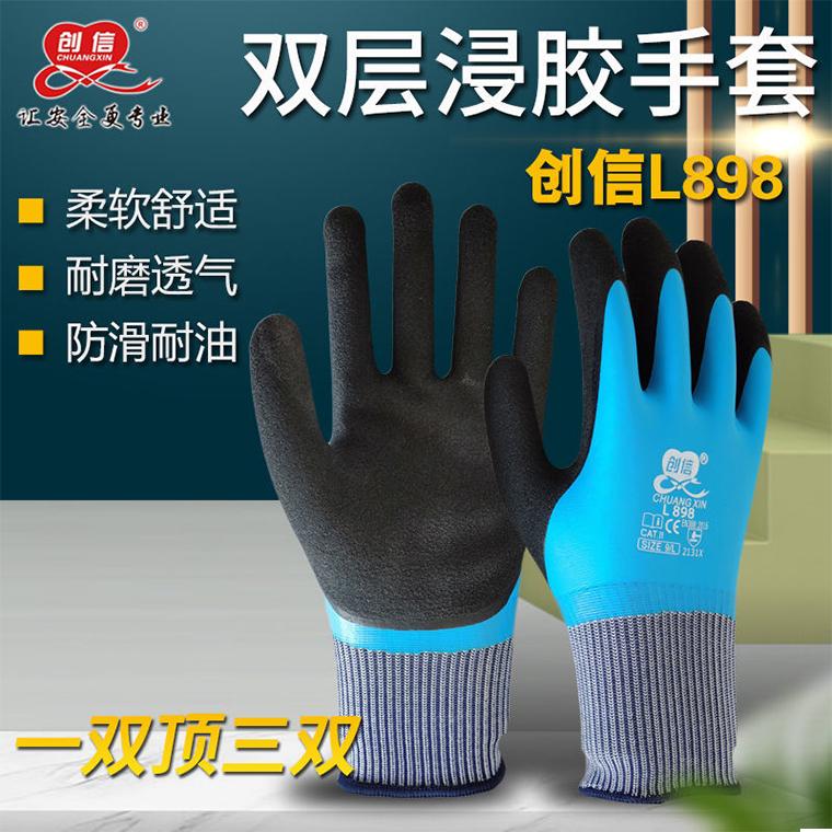 创信L898手套9# L超细发泡乳胶全挂浸胶.绿黑色浸胶