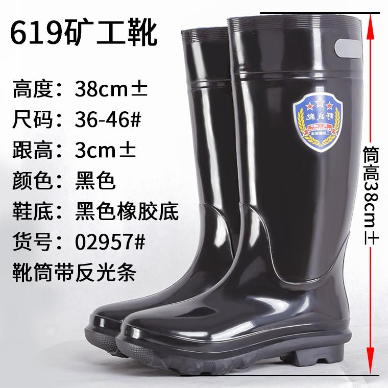 @风顺黑色雨靴619高筒38cm工矿靴单色黑底黑邦 +反光条 36# 37# 38# 39# 40# 41# 42# 43# 44# 45# 46#