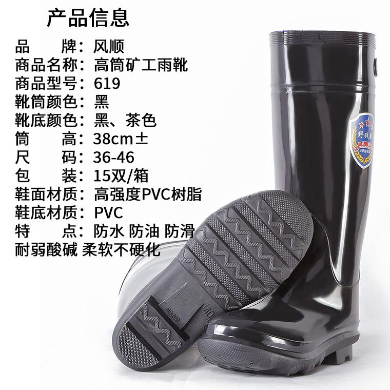 风顺619高筒38cm36-46码双色雨靴.黑邦牛筋底工矿靴