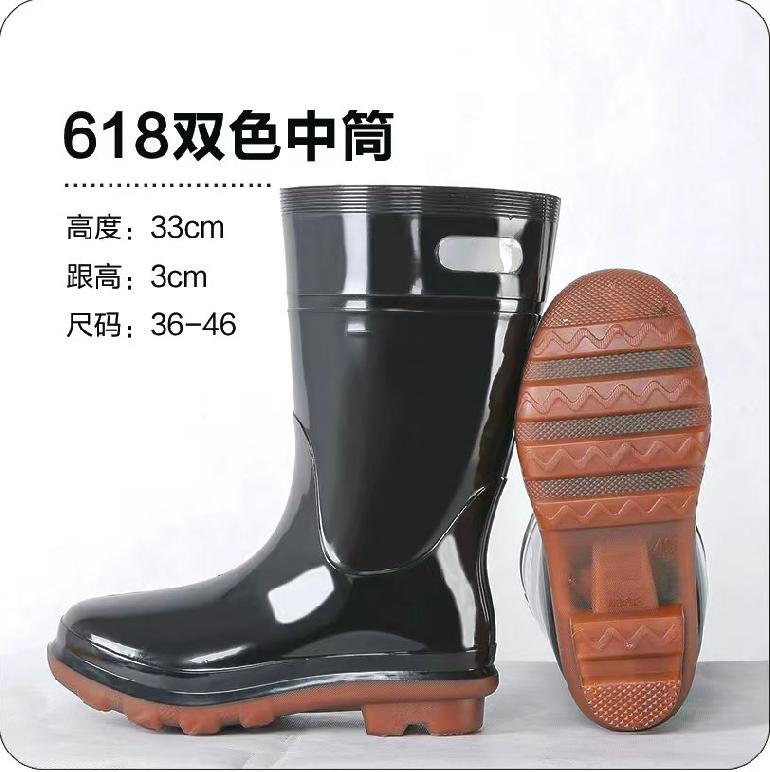 风顺618中筒33cm36-46码雨靴.黑邦牛筋底.双色工矿靴