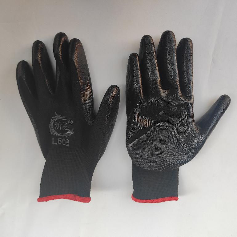 沂龙 L508 黑纱黑丁腈平挂浸胶手套