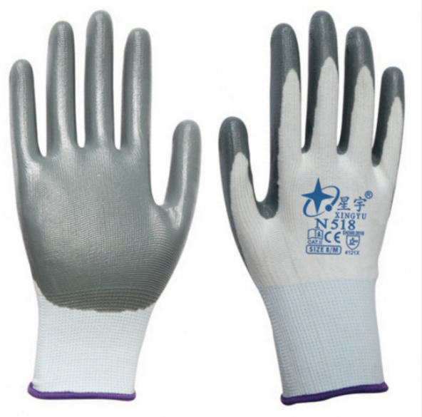 星宇N518★白纱灰丁腈平挂手套