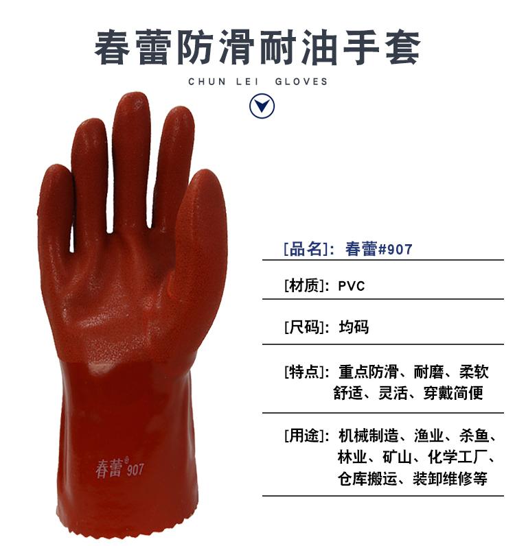春蕾907二次浸塑耐油手套咖啡/全棉