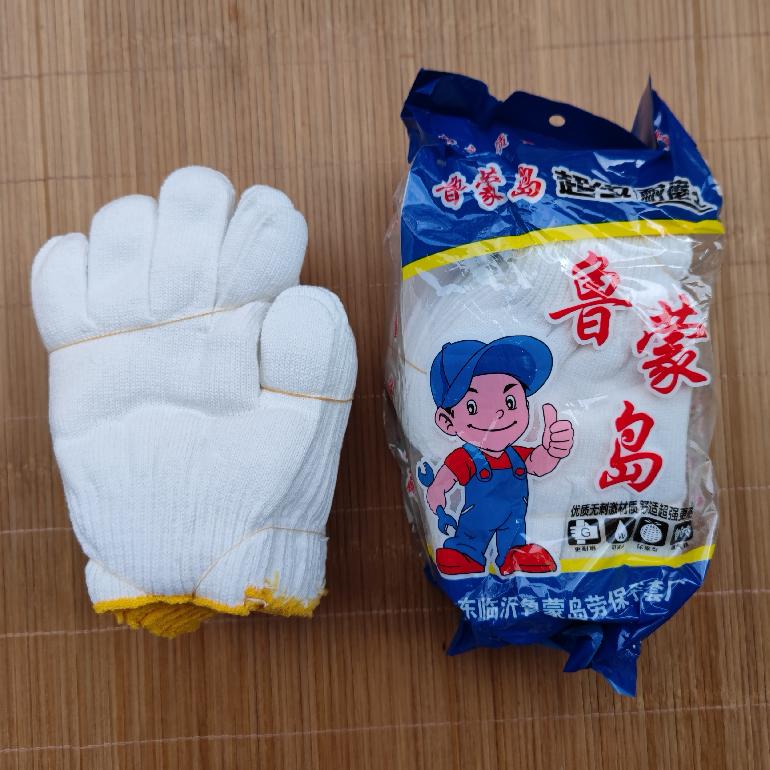 十针12双600g720双装; 黄边白纱毛纺线手套;