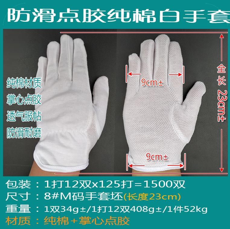白色棉布手套礼仪接待点胶点塑防滑手套文玩阅兵专用透气棉手套