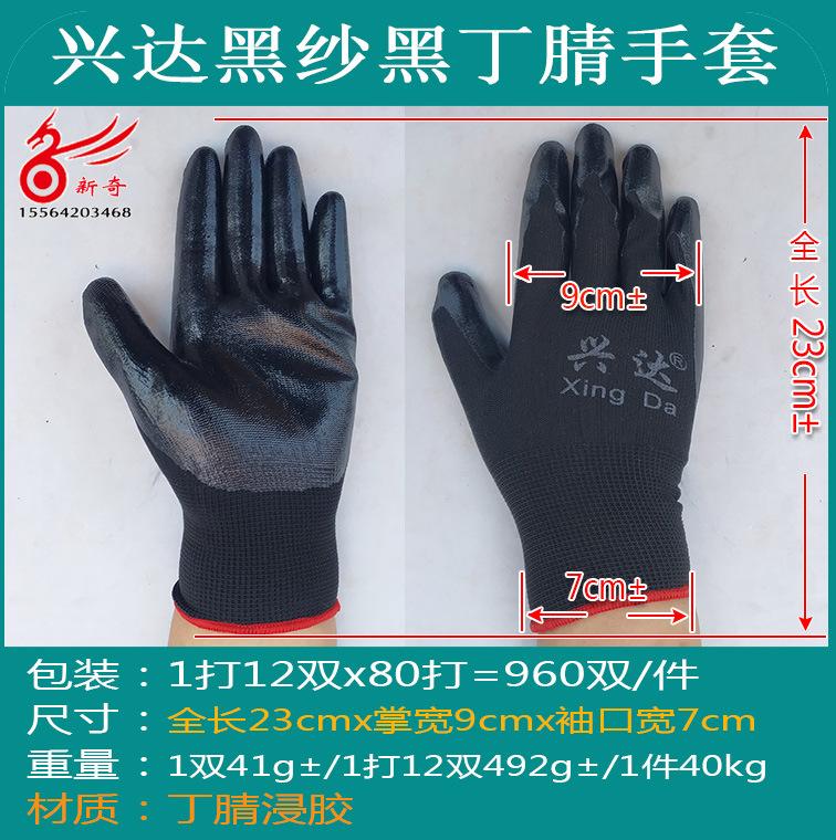 兴达D-518黑纱黑丁腈手套-纯胶 43g平挂浸胶