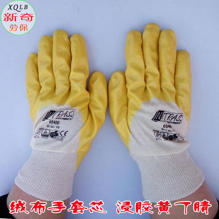 绒布黄丁腈手套-大半挂浸胶(出口款) 8 9 10#