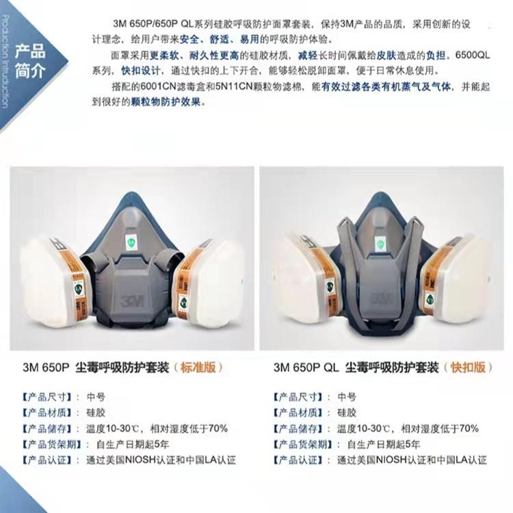 3M 650PQL防尘防毒面具/尘毒呼吸防护面具口罩标准版快扣版