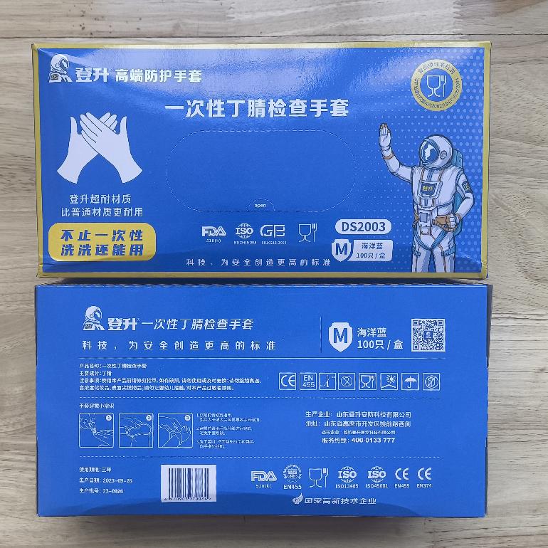 盒装9寸蓝色3.5g★登升DS2003★一次性丁腈手套(食品级EN455)S.M.L