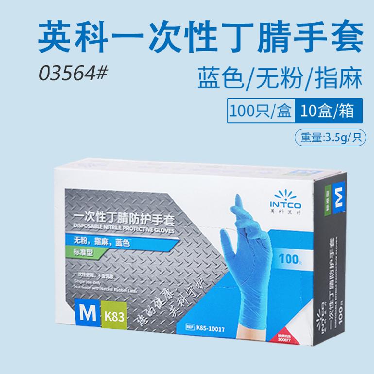 03564# 英科K83医疗★盒装9寸3.5g★蓝色丁腈一次性手套S.M.L.XL/无粉/指麻, ★ 包装:100只/盒 10盒/箱 不含税运: >2盒13.5元; >10盒13.0元; >100盒12.8元 网址:http://www.518laobao.com/html/lb_show.php?fid=3564
