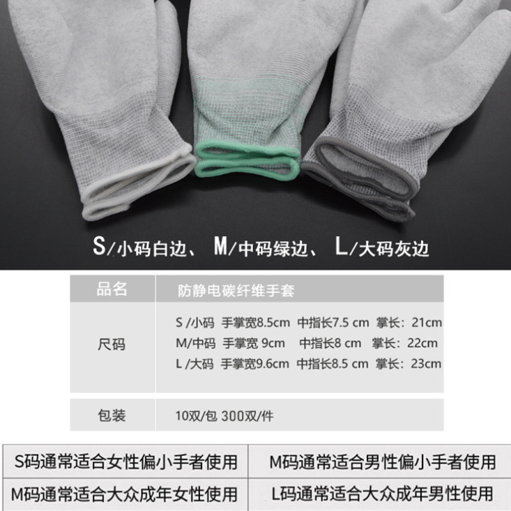 防静电.碳纤维pu涂掌手套★ 12双装★8# M 21.5g
