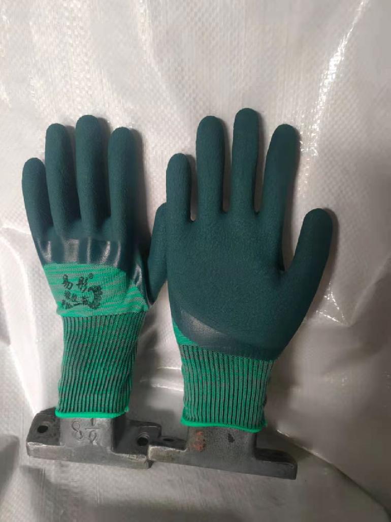 易影绿纱黑橡胶发泡全挂浸胶手套