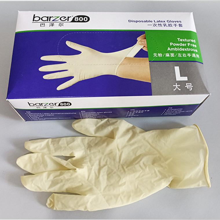 巴泽尔800一次性乳胶手套/九寸/无粉/指麻/(S/M/L);