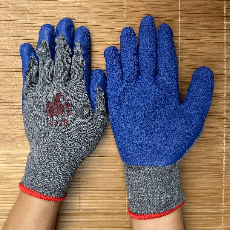 登升L328皱纹乳胶手套灰纱10针粗纱平挂浸胶