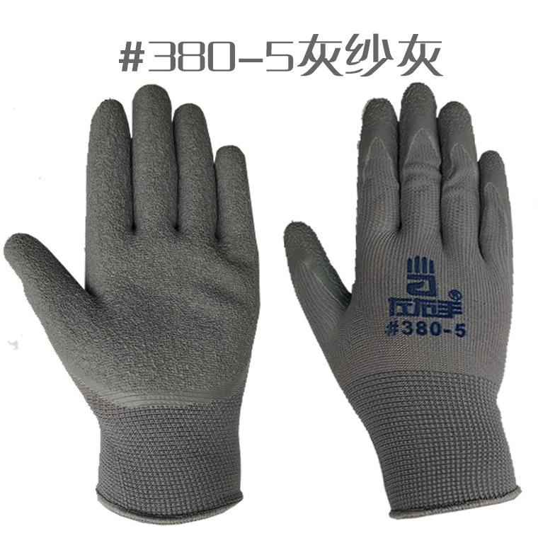 左右手#380- 5★M-13针灰尼龙灰色乳胶起皱纹平挂手套