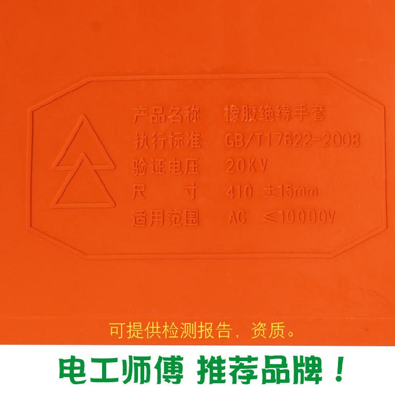 电工绝缘手套20kv★踏雪.平板直型.橘黄色.高压电工手套