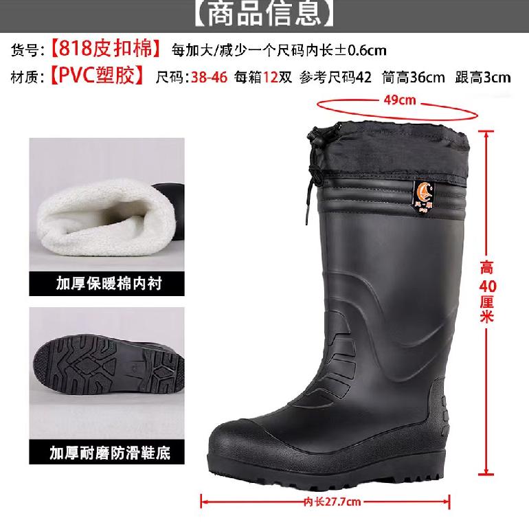 风顺818皮扣棉高筒36cmPVC塑胶雨靴